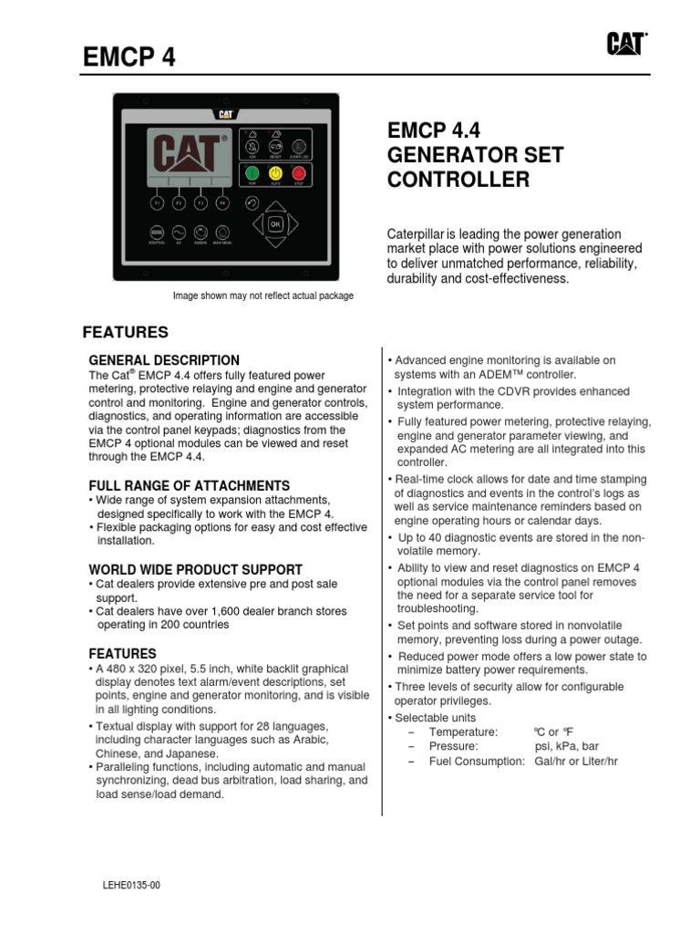 Together with the emcp 4.4 generator set It's the same service manual used by dealers that guaranteed to be fully functional and intact without any missing page. This application and installation guide is intended to cover the emcp 4.1 and 4.2 generator set control and its application in generator set systems.